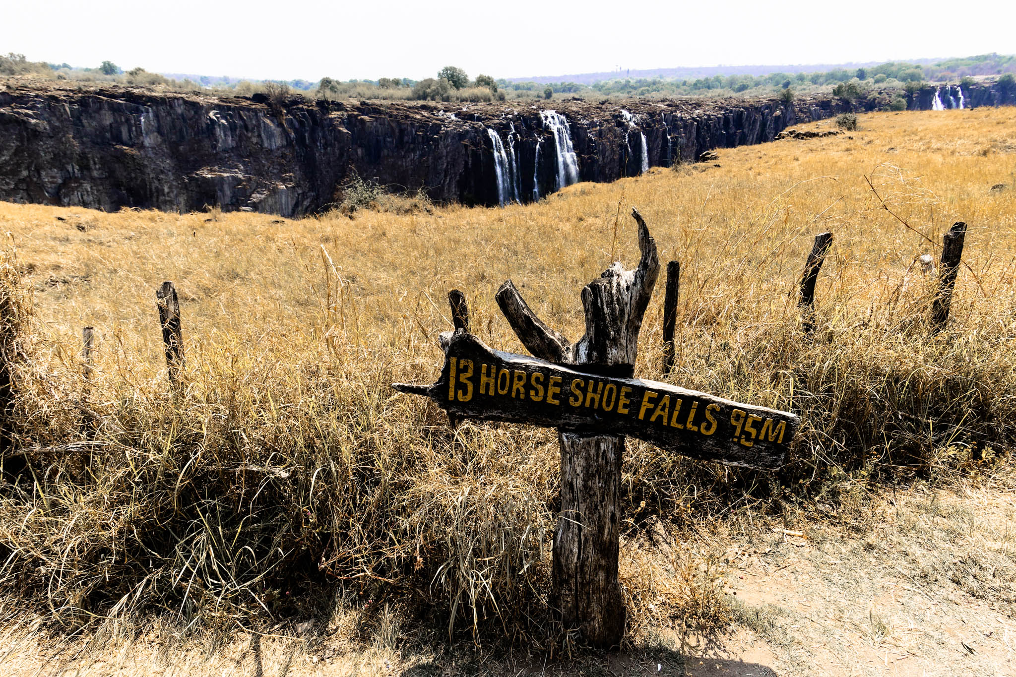 Ich versuche mir die Zahl vorzustellen: 10 Millionen Liter. Jede einzelne Sekunde. Soviel Wasser stürzt während der Regenzeit gewaltig und laut tosend rund 100 m in die Tiefe und lässt dabei diesen leichten, nassen Nebel aufsteigen, der den Himmel fast verschluckt. Während der eher trockenen Monate (wir waren im Oktober) sind es natürlich geringere Wassermengen, was die Fälle aber nicht weniger attraktiv macht. Es ist kein Wunder, dass die Einheimischen seit Generationen diesen Ort liebevoll Mosi-oa-Tunya nennen. Der Rauch, der donnert.