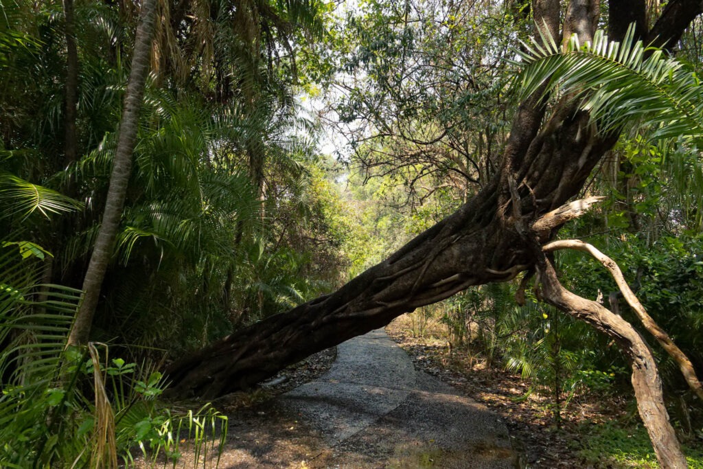 Durch die ständige Feuchtigkeit hat sich ein üppiger Regenwald breit gemacht. Es ist herrlich, durch dieses Geflecht aus Farnen und Bäumen zu spazieren, während aus den Baumwipfeln feine „Regentropfen“ auf uns herabrieseln. Bei der Hitze fühlt sich die Feuchtigkeit an wie eine natürliche, sanfte Klimaanlage.