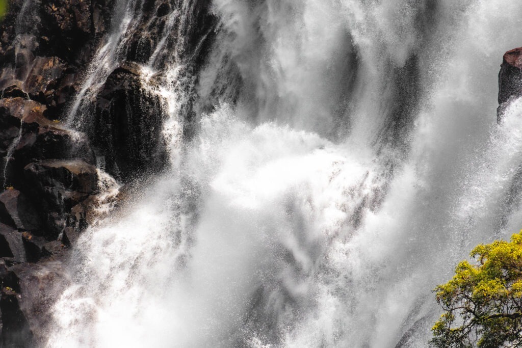 Wenn die Wassermassen in der schmalen Schlucht auf dem Boden aufprallen, passiert etwas Magisches: Eine weiße Wand aus Nebel und Gischt zieht hunderte Meter in die Höhe. Dieser „donnernde Rauch“ steigt teilweise bis auf 500 m hinauf und ist noch aus 40 Kilometern Entfernung zu sehen.